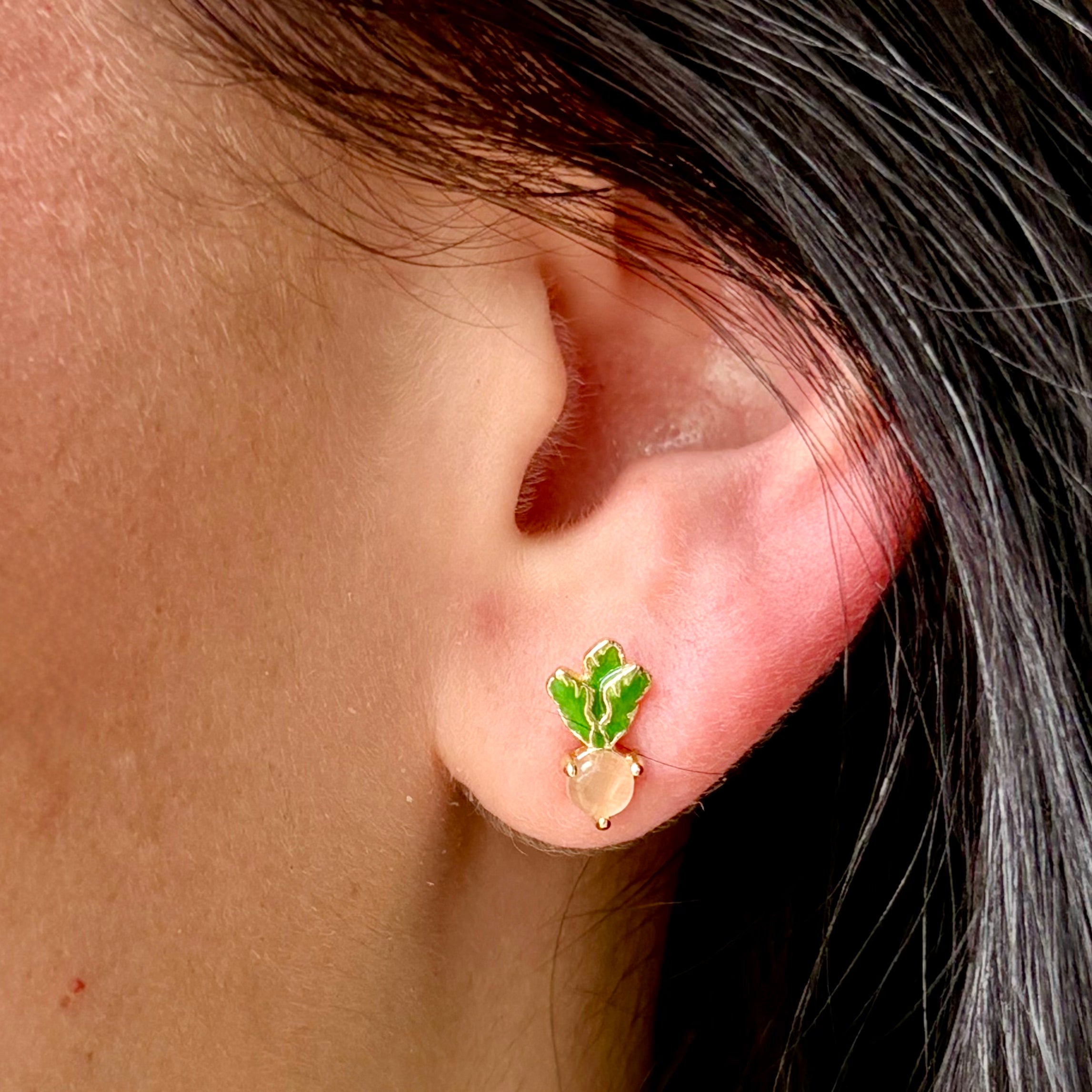 The Berry-and-Leaf Sprig Studs feature a sweet sprig design with tiny berries and leafy details for a soft, organic look. Lightweight and effortlessly pretty, these studs are perfect for everyday wear and add a subtle pop of color and charm to any outfit. Fresh, feminine, and beautifully understated.