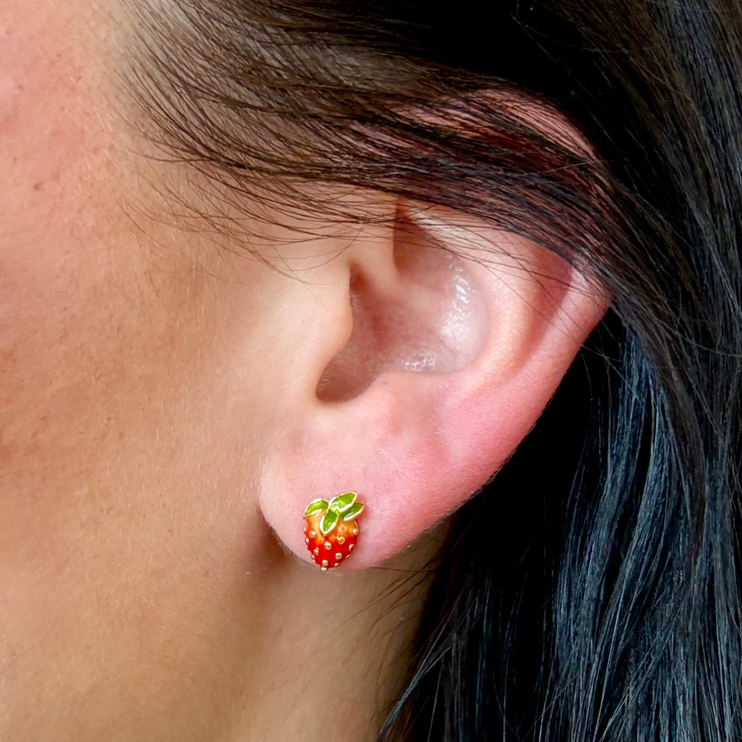 The Sweet Berry Studs feature an adorable strawberry design that adds a fun pop of color to any look. Lightweight and easy to wear, these studs are perfect for everyday outfits, gifting, or adding a little fruity charm to your jewelry collection. Cute, cheerful, and irresistibly charming.