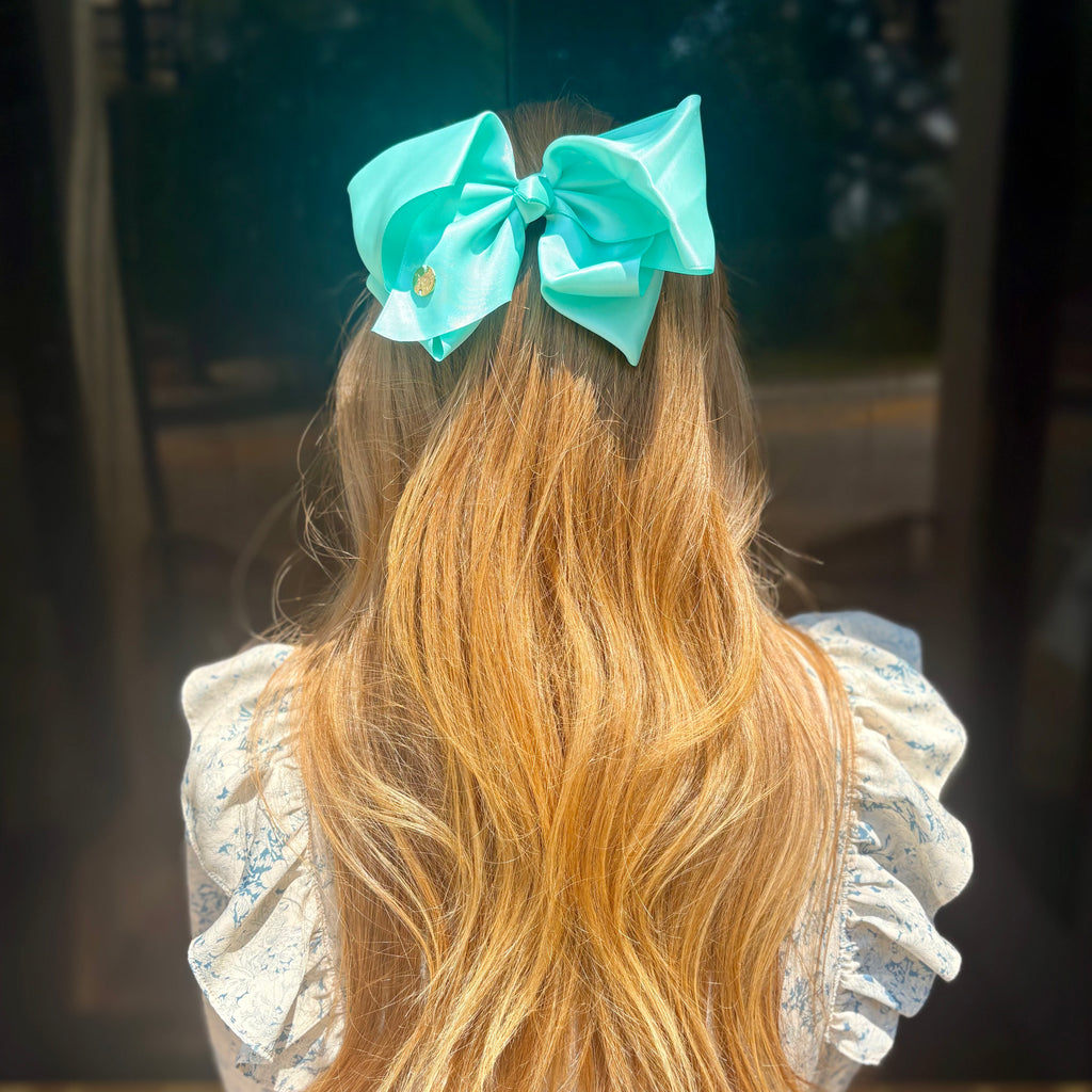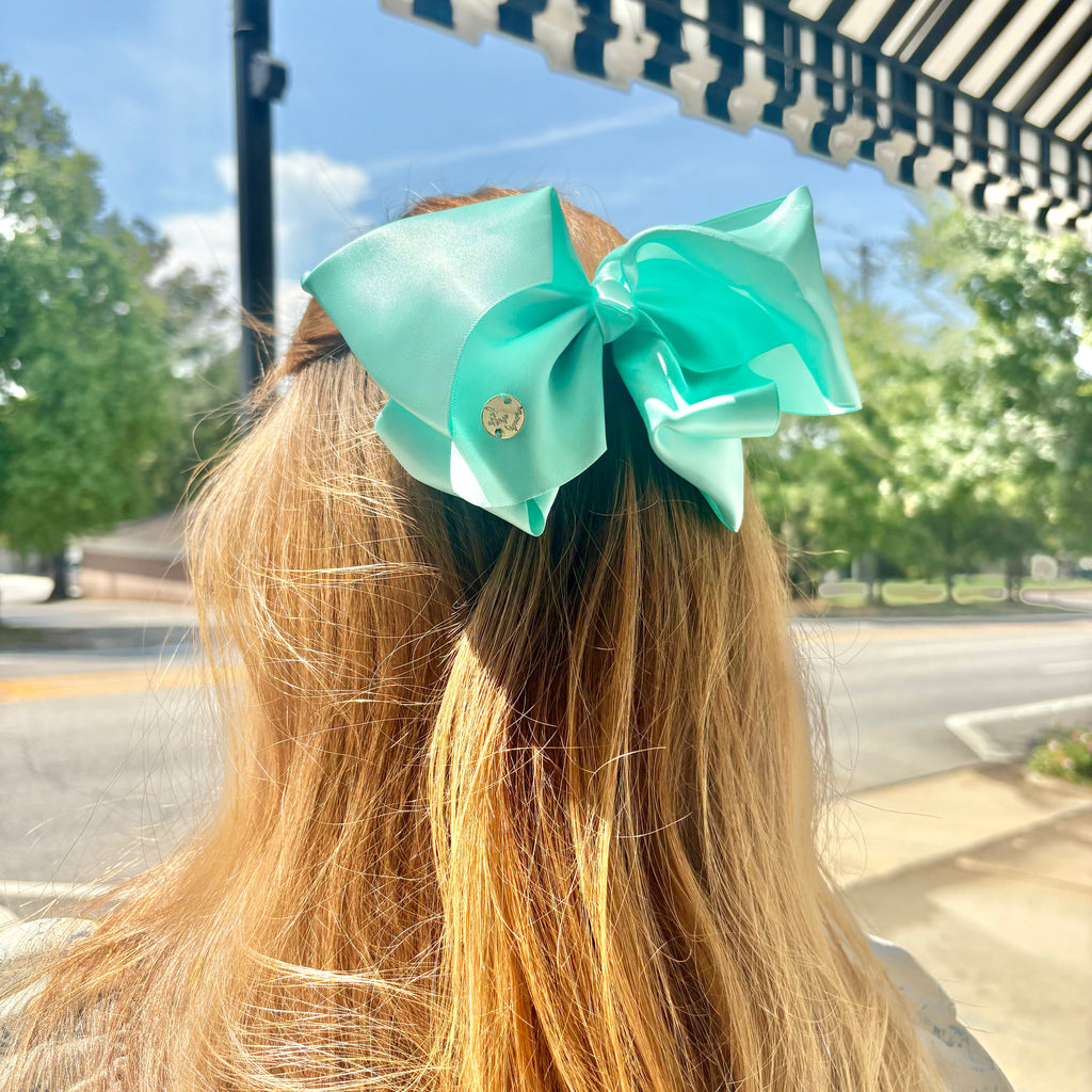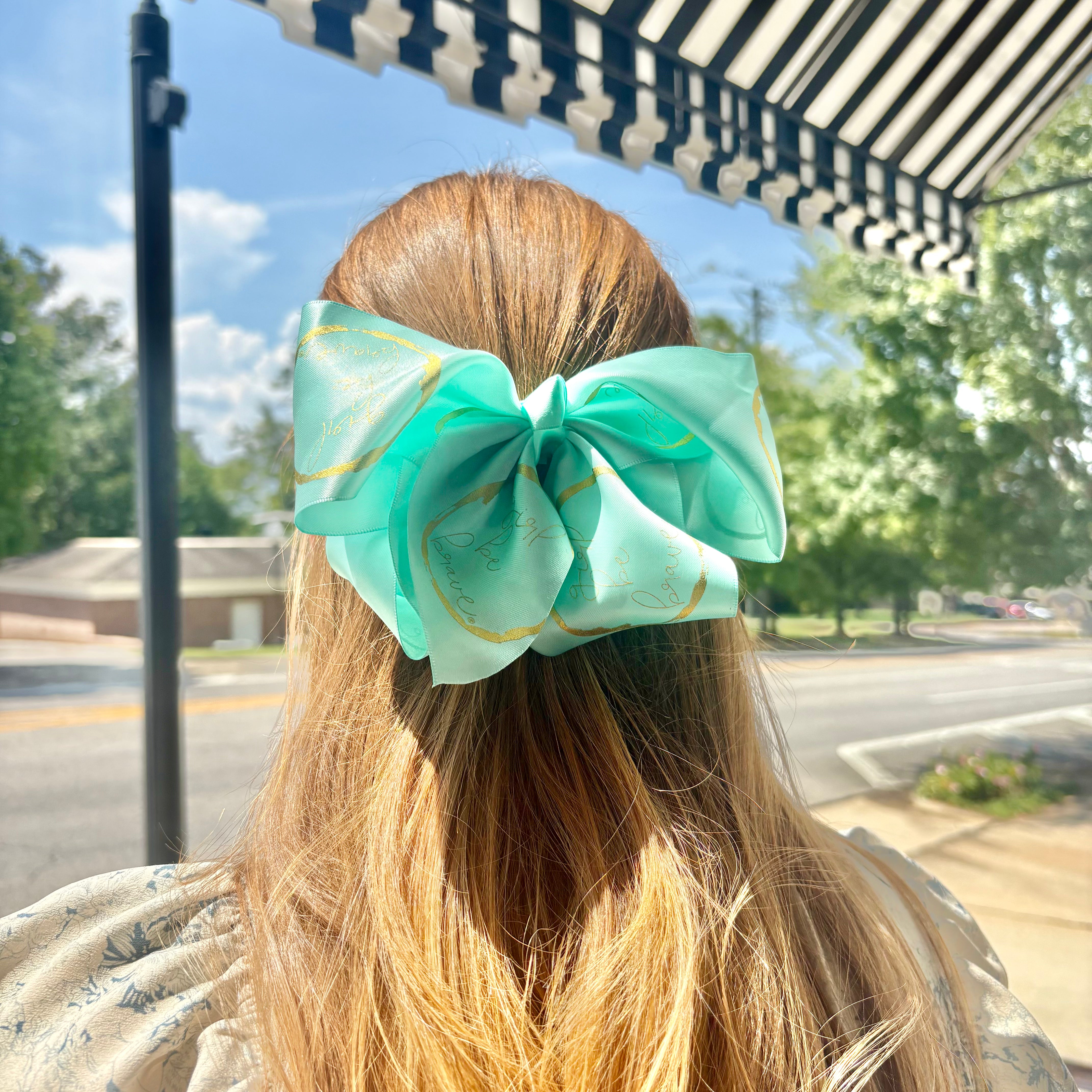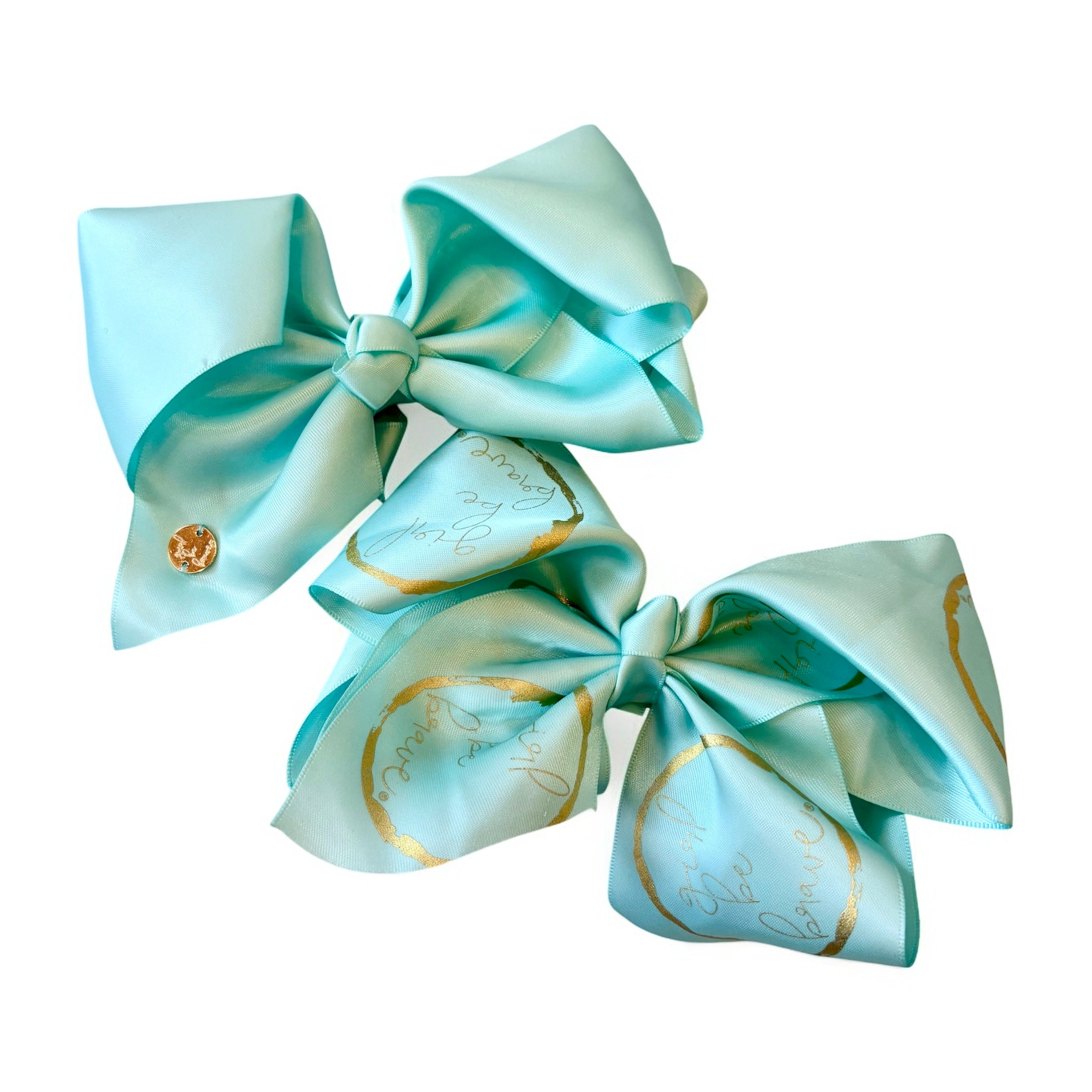 Stand out with strength and style in the Girl Be Brave Signature Turquoise Bow. This empowering accessory is available in two styles: one with a classic ribbon design and the other featuring the bold, uplifting Girl Be Brave logo pattern.