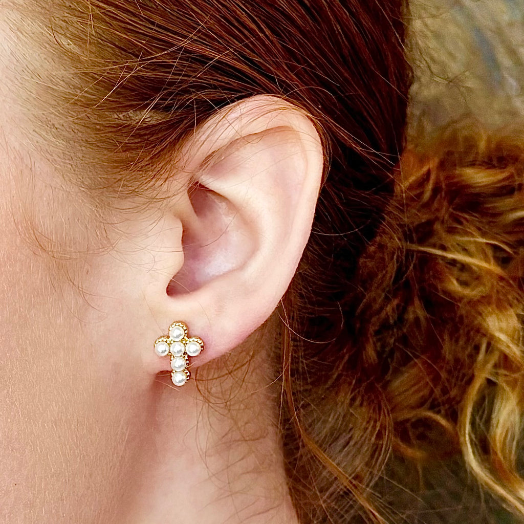 Holy Pearl Cross Studs